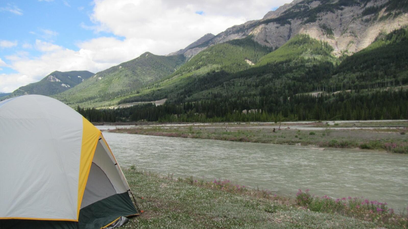 Our rustic riverside camping is located 25 kilometres east of Golden, along the Kicking Horse River. Camping is FREE to all Alpine Rafters – we do not have rates for non-rafters. We will email you a detailed map, along with the campground rules & regulations after you have booked. You will still need to check-in at our office for your rafting trip, but can head straight to the campground when you get to Golden!