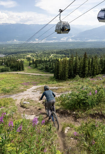 Si vous êtes à la recherche d'une authentique aventure de vélo de montagne en Colombie-Britannique, Golden est l'endroit qu'il vous faut ! Avec certains des meilleurs terrains de vélo d'Amérique du Nord, dont 185 km de pistes de ski de fond, la descente difficile du Mont 7 et le parc de descente avec remontées mécaniques du Kicking Horse Mountain Resort, Golden est en train de devenir l'un des endroits clés des Rocheuses canadiennes pour le vélo de montagne et les événements cyclistes.