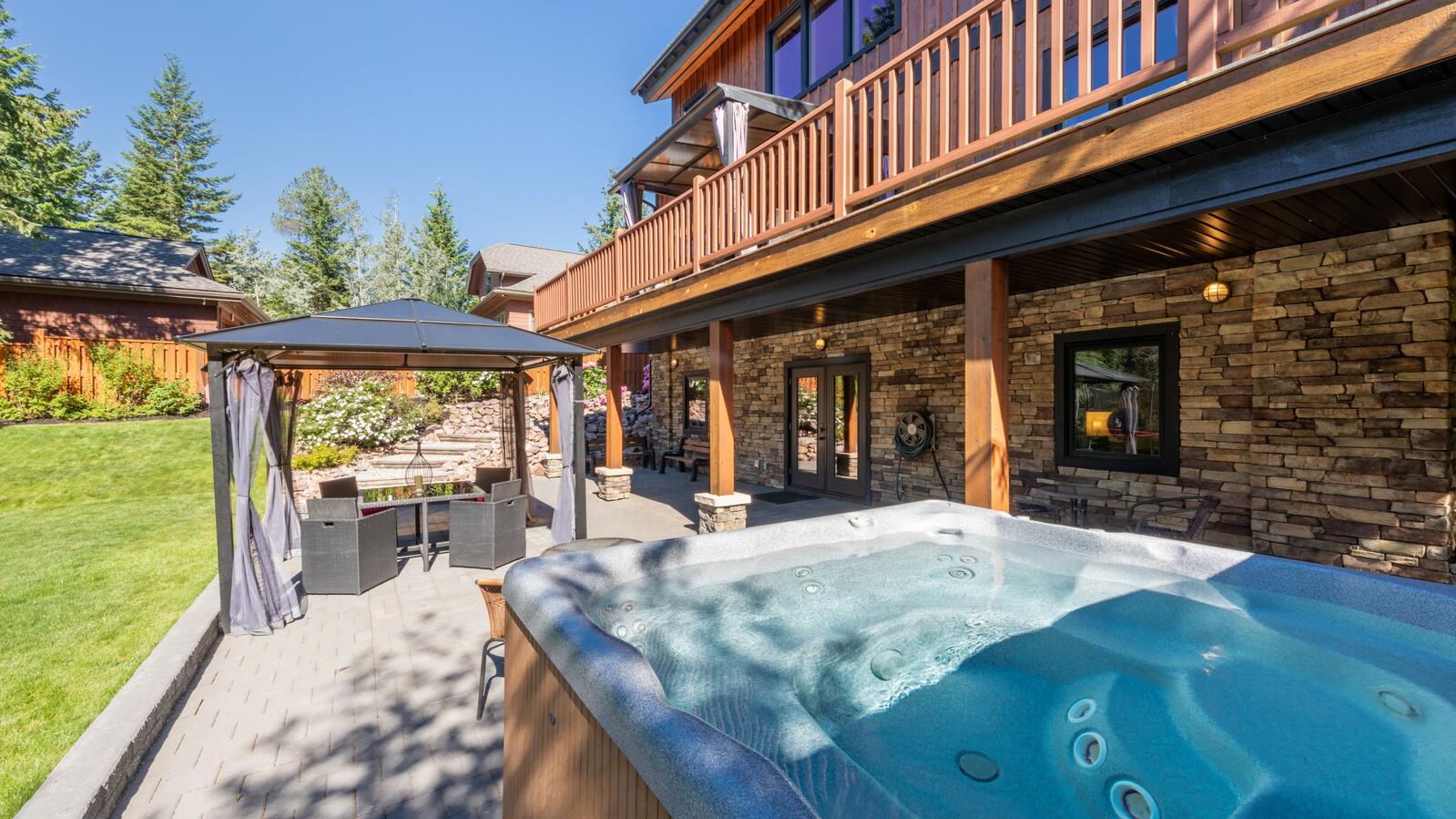 Canyon Ridge Lodge is a beautiful timber frame lodge. There are 3 exceptional Bed and Breakfast rooms. Our homely rooms all have private and en-suite bathrooms with under floor heating throughout. Each room has its own flatscreen tv and access to the WiFi. The rooms access an impressive guest lounge, leading to the garden, patio and hot tub. For longer stays there is also the spacious Purcell Suite, a king size, self-catered suite.