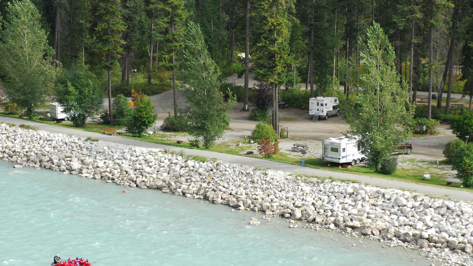 Kicking Horse Riverside Campground in Downtown Golden with access to trails for biking and hiking. Steps to community pool & Rec facilities, shopping & dining.