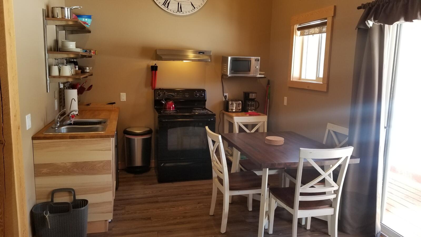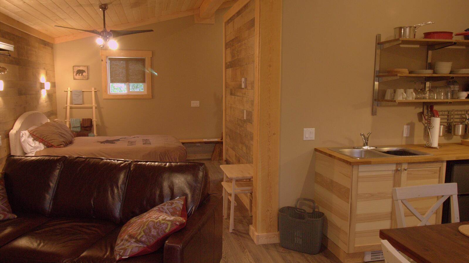 Welcome to The Kabin at Kicking Horse Kabins, offering fantastic mountain living. Our beautiful 450 sq ft property is an excellent option for two to four guests, looking for a peaceful mountain getaway.