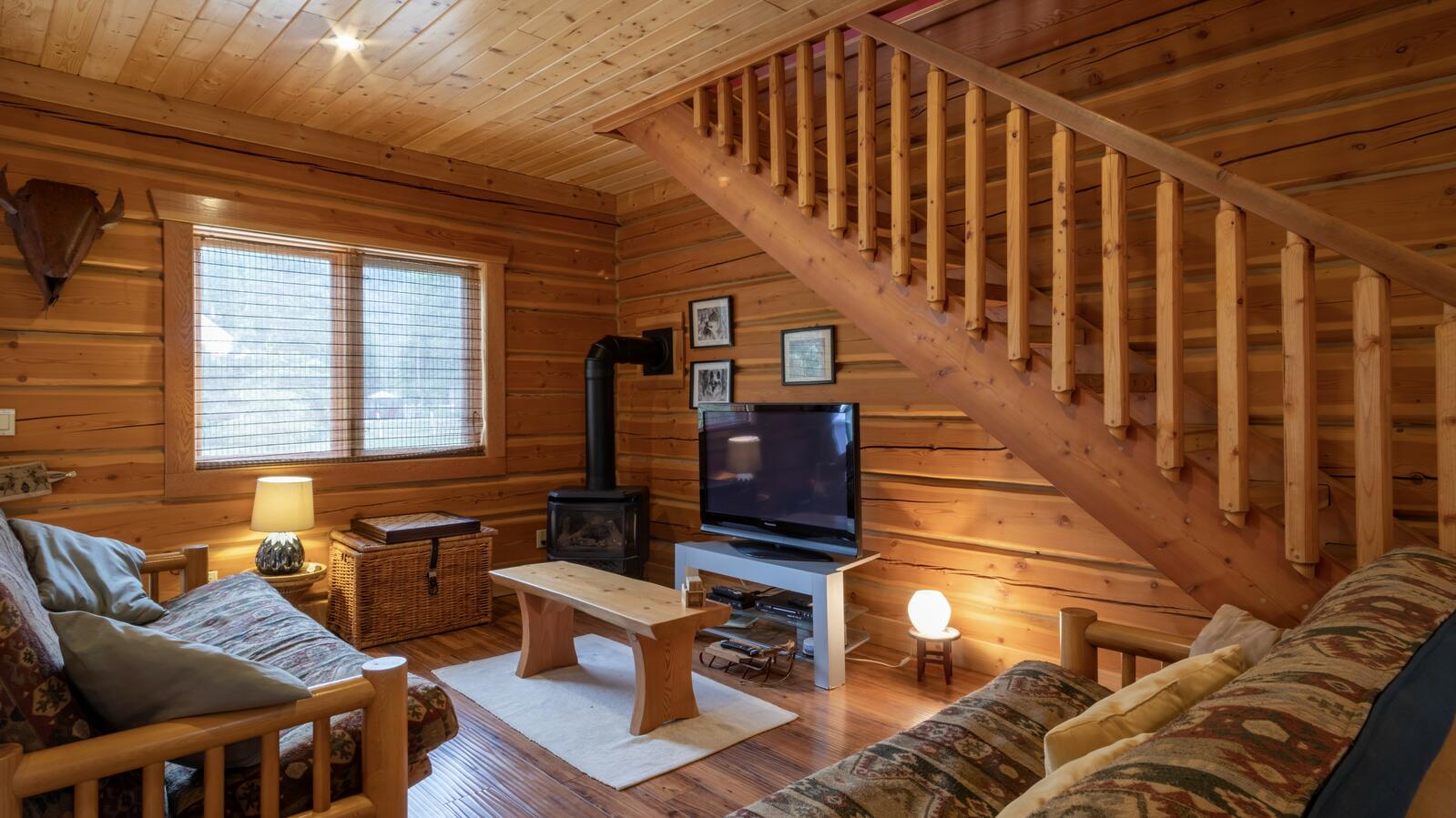 A three bedroom, two bathroom, 1200 sq foot log home property in the heart of the Blaeberry Valley, minutes from Golden,
